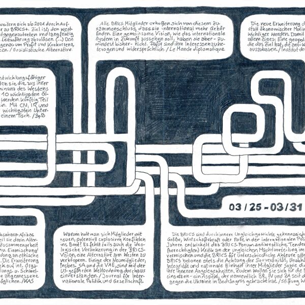Ausgangspunkt sind Ausschnitte aus meiner alltäglichen Lektüre (Tages- & Wochenzeitungen, Kunstzeitschriften, Literatur…) und die anschließende Recherche zu den Hintergründen eines darin angesprochenen Aspektes.